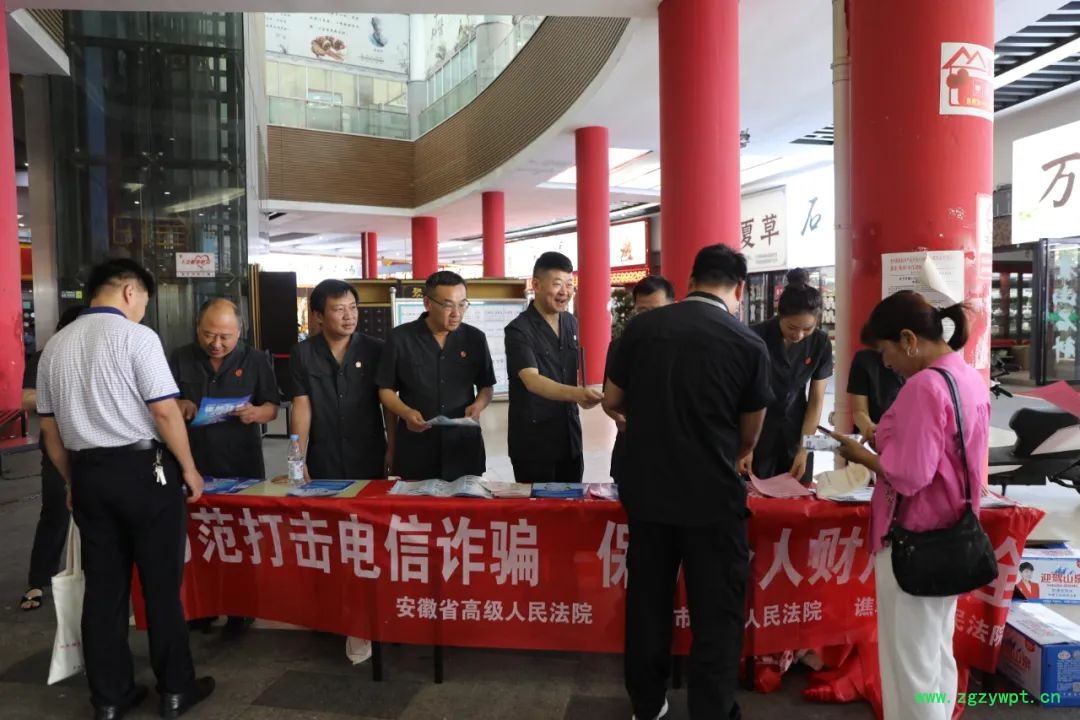 7月14日上午,安徽省高级人民法院、亳州市中级人民法院和谯城区人民法院三级法院联动,走进亳州中药材专业市场开展防范电信网络诈骗普法宣传活动。