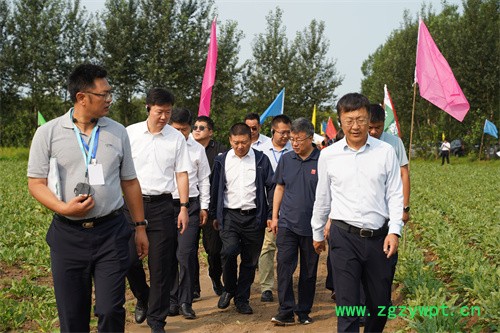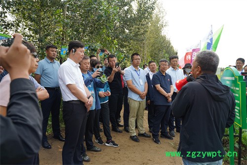 与会人员来到双榆树乡新华村板蓝根绿色防控技术集成示范区现场观摩,认真听取情况介绍,详细了解绿色防控药剂筛选、成效对比、新植保技术在中药材种植上的应用等。