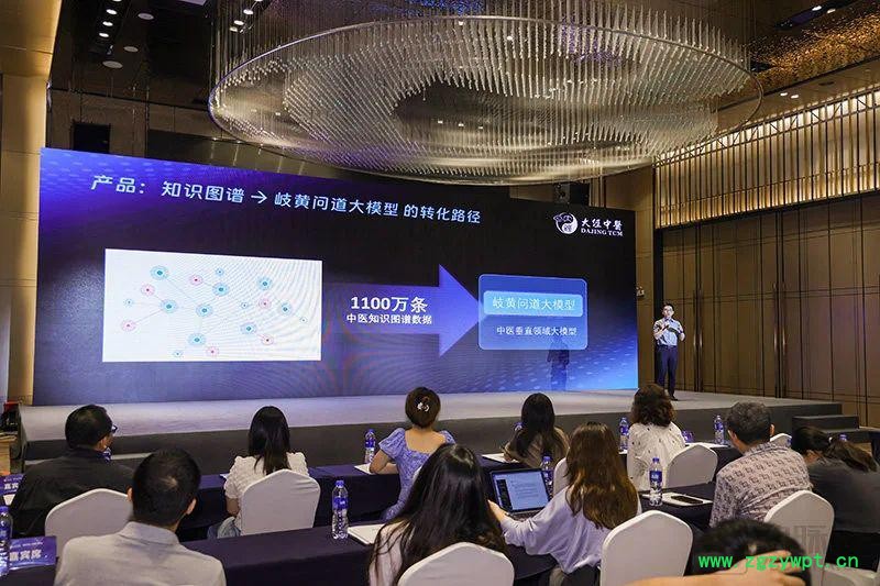 王祺介绍从知识图谱到 " 岐黄问道 · 大模型 " 的转化路径(图片来自大经中医)