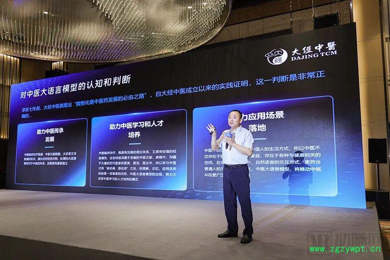 王祺表示 " 岐黄问道 · 大模型 " 差异化的独特价值分别是数据、产品和服务(图片来自大经中医)