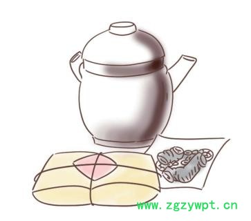 ▲ 包煎:有些中药带毛(如车前子等),可能对咽喉产生刺激性;有些细小、质轻的中药(如蒲黄等)容易漂浮在水面上,不便煎煮;有些含淀粉、黏液质较多的中药(如车前子)若直接入水煎煮,易煳锅。因此,上述中药需要用纱布包好后放入同煎。