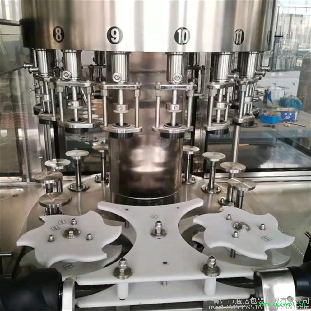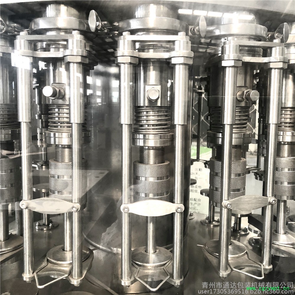 液位式灌装:采用液体压差式灌装,有效避免灌装液体的易起沫现象。 寿命长:灌装阀结构精密,密封件少,可靠耐用。 喷洒式灌装:灌装时液体沿容器内壁流下,有效抑制了液体冲击瓶底所造成的起沫现象。 瓶损少:采用弹性拖瓶结构,灌装时瓶拖柔和,有效减少瓶损。 无瓶不灌装:无瓶及瓶口有缺陷的瓶型不灌装,从而提高灌装后的产品质量。 维修方便:灌装阀结构简单,拆卸,清洗方便。 该系列灌装机专用于不含气液体,葡萄酒,黄酒,酱油,醋等易起沫液体的定液位灌装!
