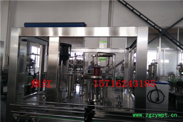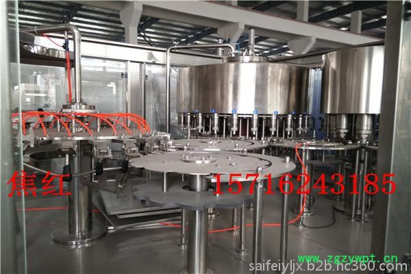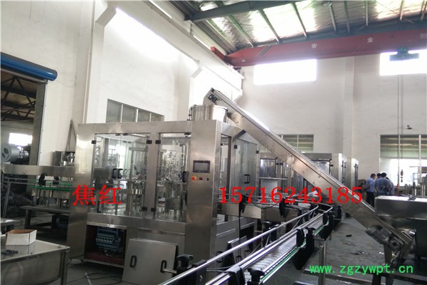 小型纯净水三合一灌装机:本机将冲洗、灌装、旋盖三功能合在一个机体上,全过程实现自动化,适用于聚酯瓶、塑料瓶灌装果汁、矿泉水、纯净水,加上温控装置还可以进行热灌装。各部分的适用瓶型调整采用手柄转动实现,轻松自如,简便快捷。灌装方式采用了新型的微压灌装,使灌装速度更快更稳定,所以与同规格的机器相比本机的产量更高,效益更大。本机采用了先进的OMRON可编程控制器(PLC)控制机器的自动运行,进瓶链道采用变频器调整,与主机变频器相互配合使进瓶运行更稳定可靠。 光电检测各部件的运行状况,所以自动化程度高,操作简便。在此基础上,本机变更灌装部分,可以形成低真空灌装方式。低真空灌装方式(Z型机),适用于玻璃瓶,灌装酒类、酱油等物料,其封口方式可以选配铝金属防盗盖和塑料盖。是饮料生产厂家理想的首先设备。