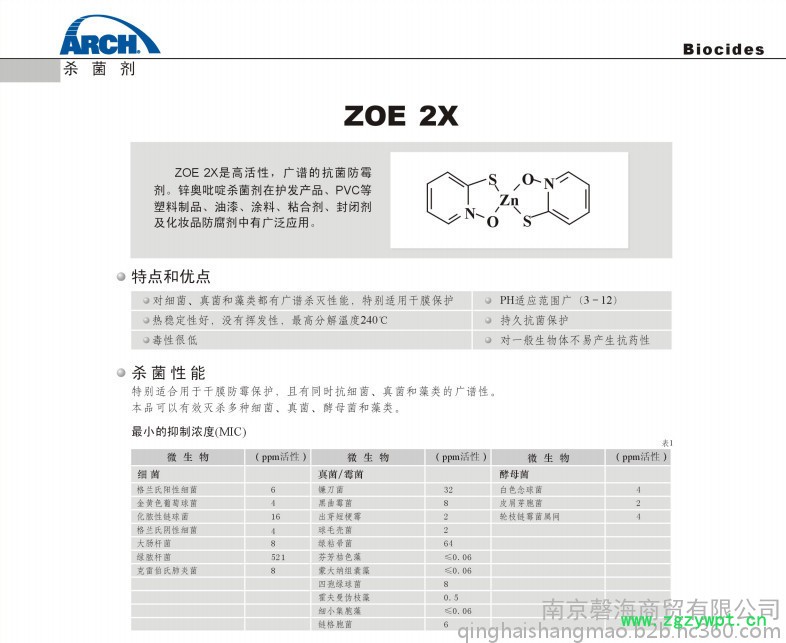 | 应用范围 | 抗菌防霉剂 ZOE 2X 化妆品用防腐剂 |