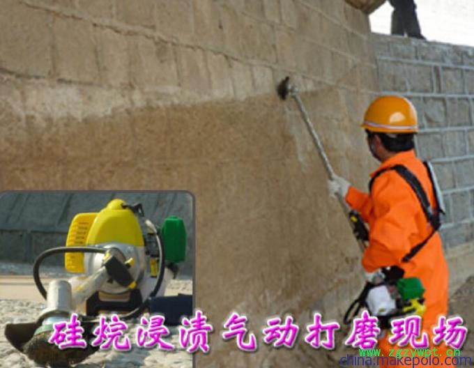 混凝土硅烷浸渍防护剂特殊的小分子结构与混凝土基材有着良好的亲和力,能轻易渗透到混凝土内部,硅烷活性成分与暴露在酸性和碱性环境中的空气及基底中的水分产生化学反应,生成羟基团。这些羟基团将与基材及其本身产生交联、堆积,结合在毛细孔的内壁**终在混凝土的毛细孔表面形成一层牢固的憎水性有机硅网络保护层,能够有效地阻止外部水分和有害物质的入侵,并让内部水气和有害气体逸出,从而大大提高混凝土结构的防水性、耐盐碱性、抗冻融性等特性,延长钢筋混凝土寿命。