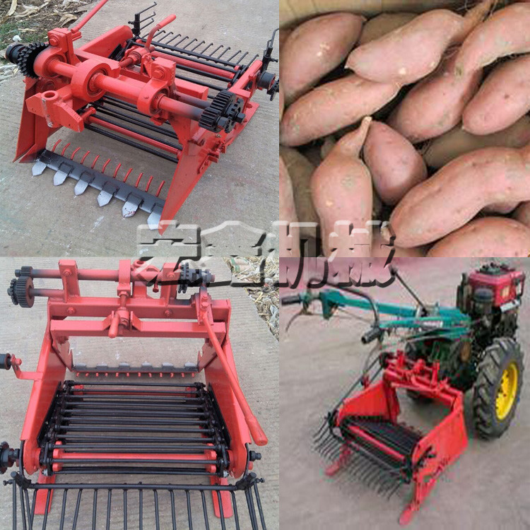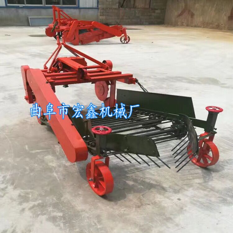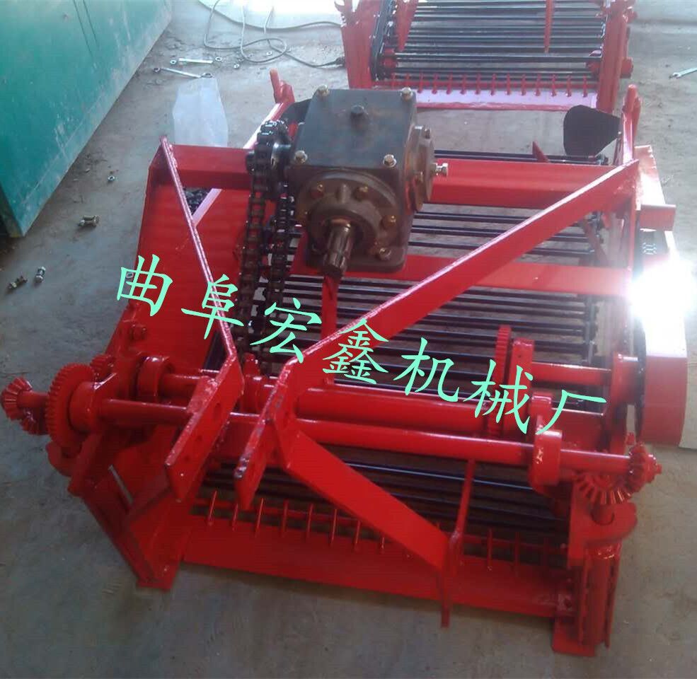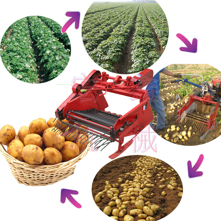 马铃薯收获机是悬挂在10-12马力手扶拖拉机后方,以手扶拖拉机为牵引动力。主要收获与该机配套种植和间作种植的马铃薯、大蒜、地瓜等地下根茎作物。具有收获效率高、性能好、破皮率地,结构简单,操作维修方便等特点。