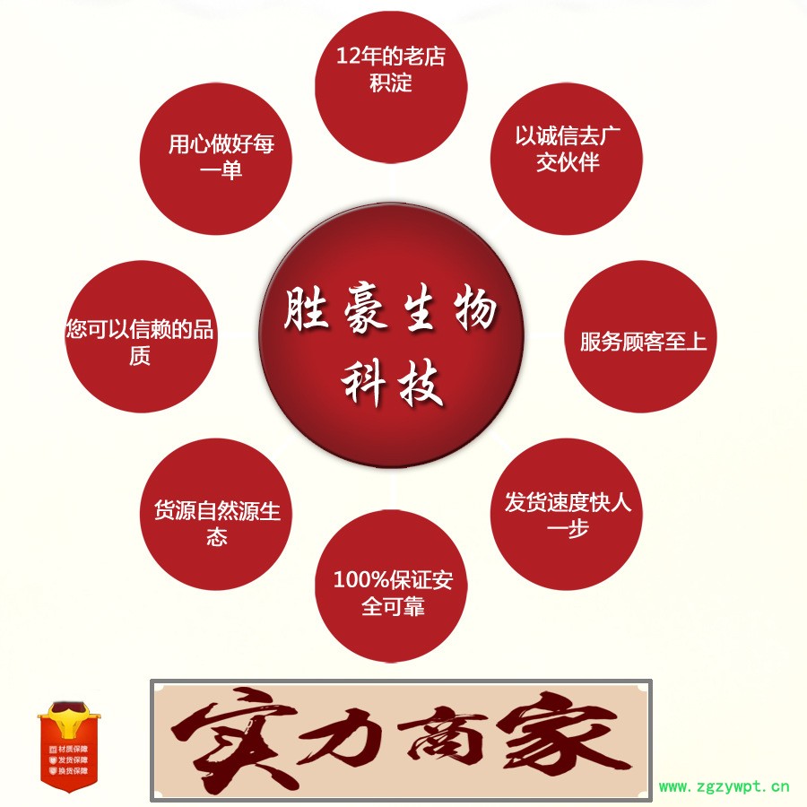 亳州市胜豪生物科技有限公司成立于2005年,是一家实体网络双模式经营批发公司。手续齐全,可加工生产。本公司主要经营散装花草茶,包装花草茶,支持贴牌生产,代加工。现有产品3000多种,概于网络局限性不能一一上传,店内没有展现出来的产品以及您所需要的产品都可以前来垂询客服产品质量及价格。 本公司常年供货于各大公司,淘宝卖家,天猫卖家,大中小药房,一直坚持以诚信经营,货真价实,童叟无欺的理念立足于行业12年。
