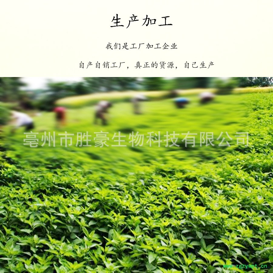 我们是亳州胜豪生物科技有限公司,一路走来广大客户已经陪我们走过了12年。作为一家源头供货的批发商,我们的花草茶,中药材品种齐全,保证给您可以信赖选择的好价格,同时保证可靠的质量。让您放心,我们安心。这是一个双赢的时代,公司常年与多家零售、代理商、超市、公司建立长期稳定的合作关系。我们以积淀的实力,重诚信,守合同的精神,多品种经营的特色和薄利多销的原则,荣幸得获得了广大客户的认同。在此欢迎新老客户洽淡合作,共同发展。