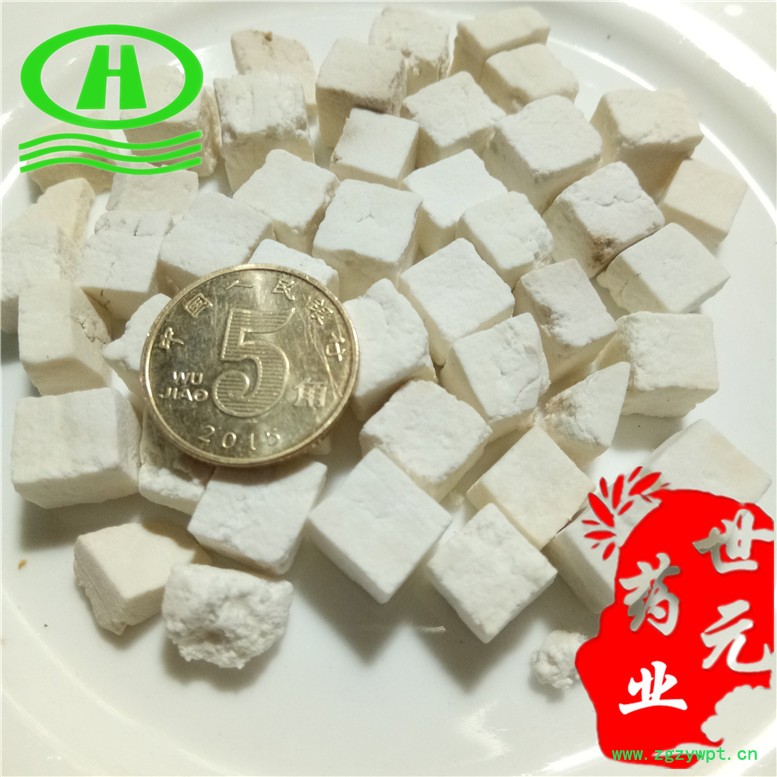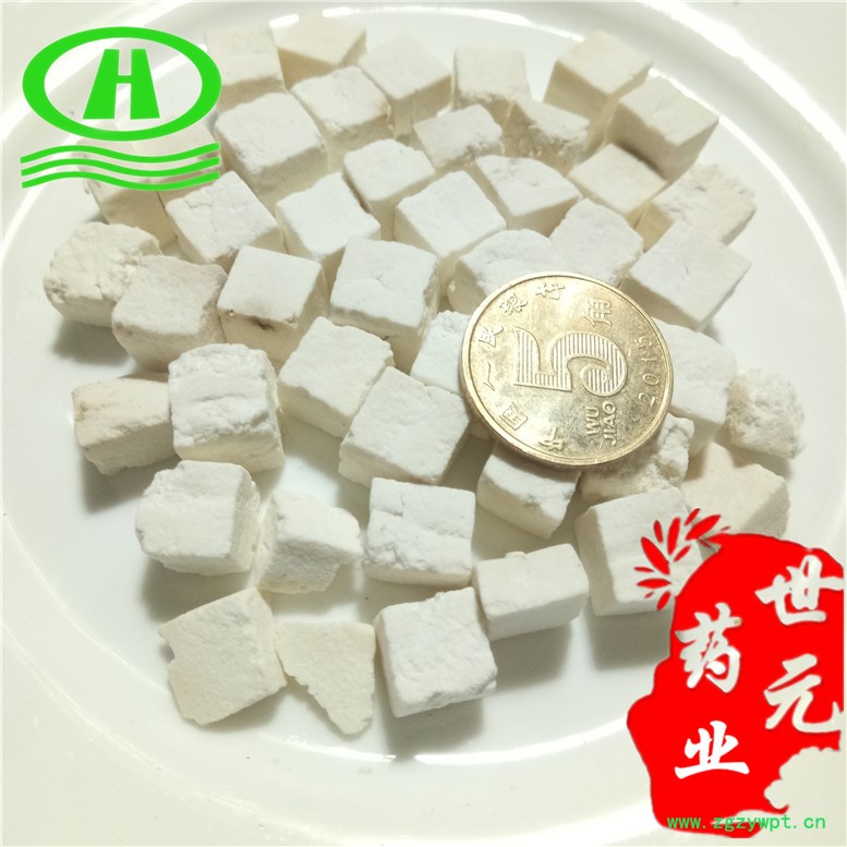 【药材性状】自然白色小方丁,质地瓷实,少量碎块