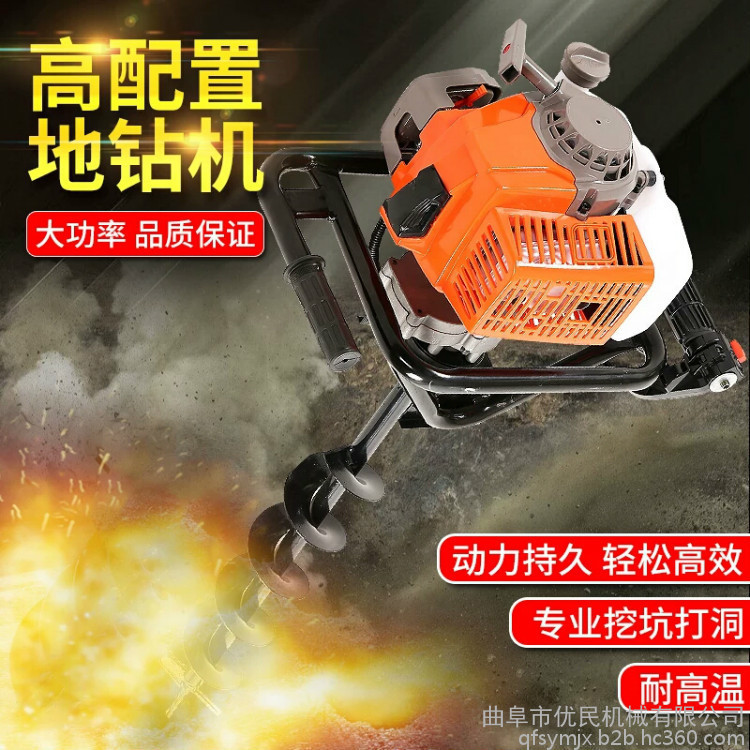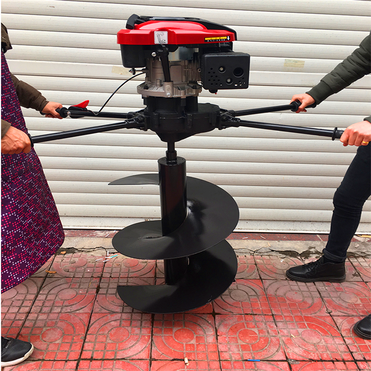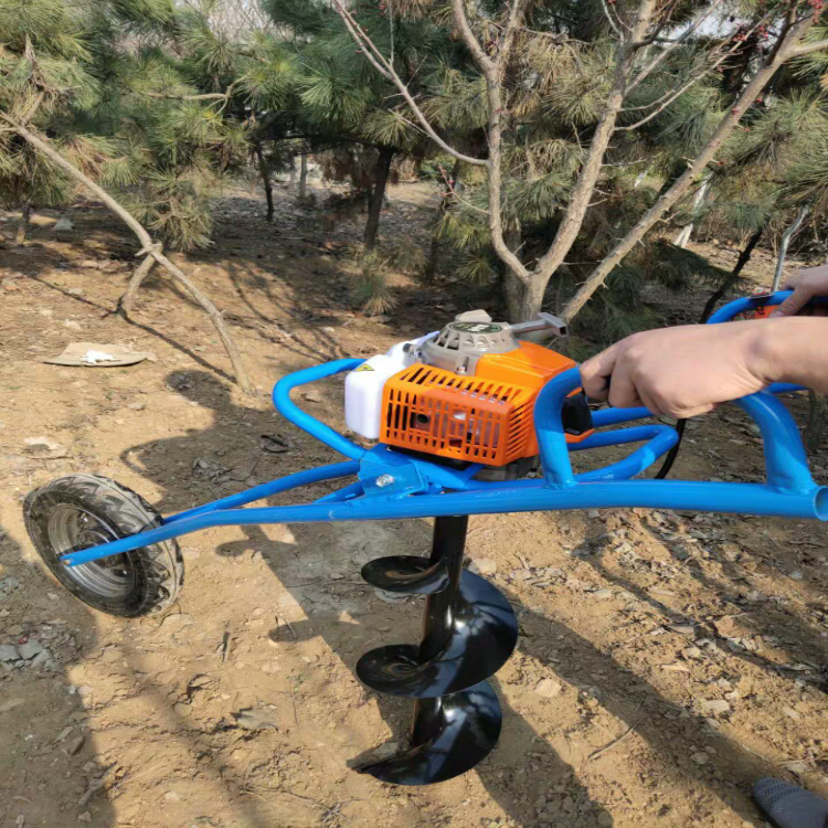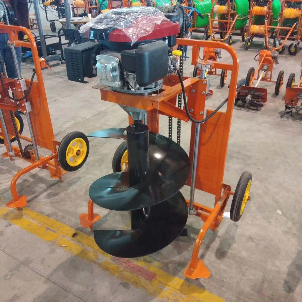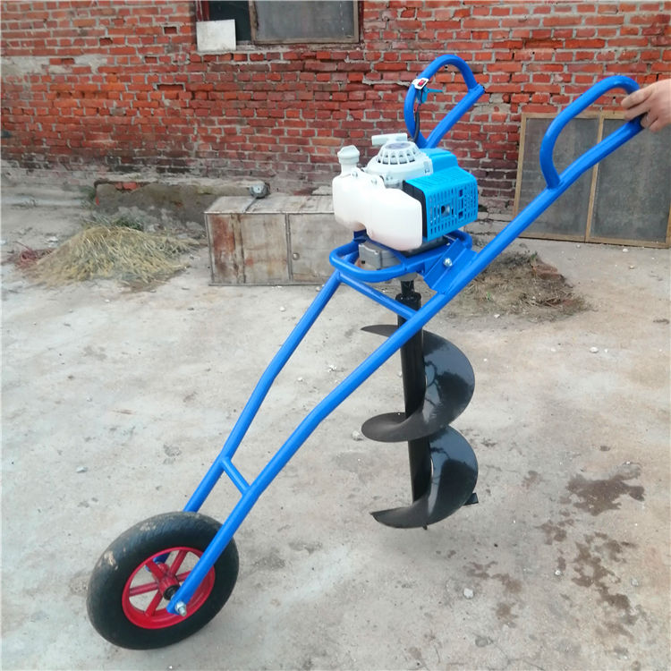 本厂生产的挖坑机安全可靠,性能优异,本机滑杆上装有压力弹簧辅助人力起升钻头,省力、省时效率高,质量优,成本低,装有脚轮使移动轻松便捷。