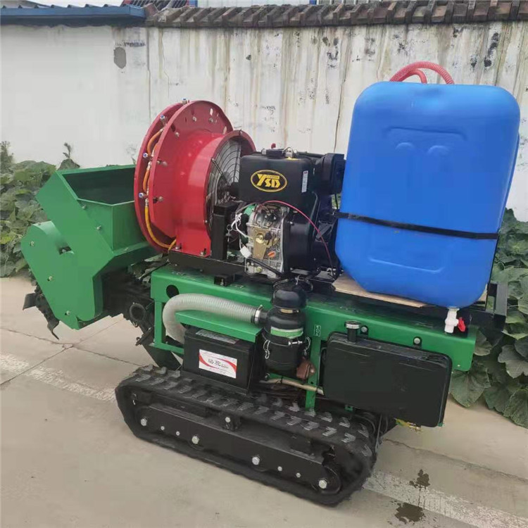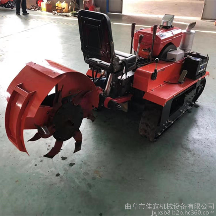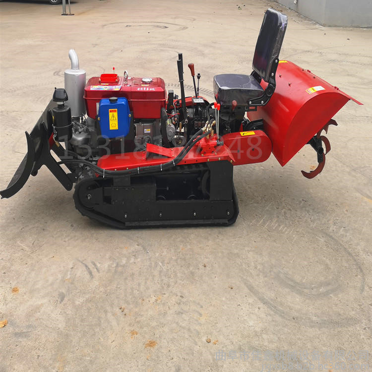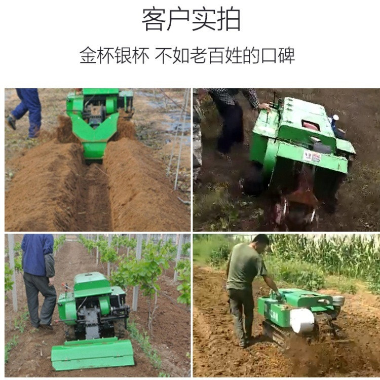 多功能 履带式开沟施肥机安装上不同的配件可以进行单独旋耕、回填、单独开沟、施肥、也可混合搭配使用。产品结实耐用,性能优越,操作方便.耐用:机身加厚,密,履带式行走,可进行原地转向。刀具都是加厚75号猛钢锻造,非常耐磨耐用,工作效率高.