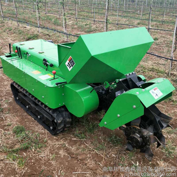 履带开沟施肥机是一款多功能田园果园管理机械;特点是开沟施肥/回填自动化一次性完成!固态化肥(颗粒/粉末);有机肥/厩肥都可以实现自动化完成。也可以单独开沟二次回填,还可以装配/旋耕犁/锄草机具!由于农家肥和化肥的肥料性质差别很大,这种开沟施肥机是您的选择!这种开沟施肥机的工作原理是由双叶片的螺旋式推进器横向将肥料佳鑫爬坡式旋耕锄草机 深度施肥用的撒肥机 大面积果树施肥机