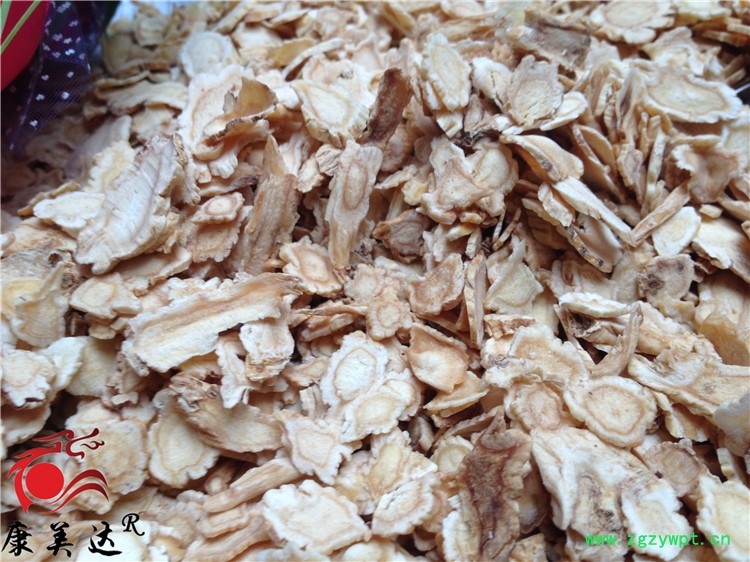 [性 状]:本品呈圆柱形或略呈纺锤形,下部渐细,有的有分枝,略扭曲,长7~20cm,直径0.7~2cm。表面白色或淡黄白色,不去外皮者表面黄棕色至灰棕色;具纵扭皱沟,并有横长的皮孔样斑痕及支根痕。上部有横纹。有的顶端有较短的根茎或不明显,其上有数个半月形茎痕。质脆,断面不平坦,形成层环棕色,皮部类白色,有裂隙,木部淡黄白色。无臭,味微甜后苦。