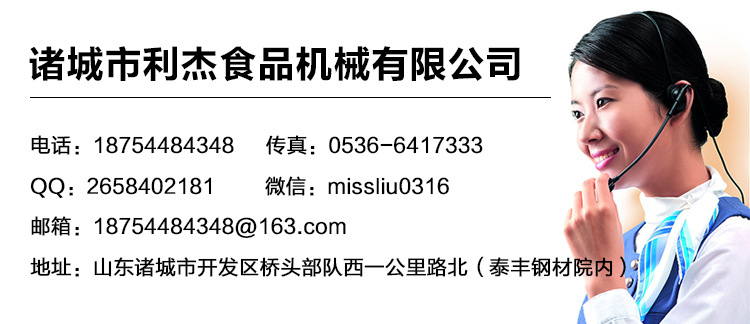 交易流程: 1.电话建立交流,提交参数要求及确定选型(设备的配置可根据用户的实际要求进行定制,确保经济实用)。 2.确定价格。因考虑到用户选择的配置不同及全国各地物流价格差异,价格可议。 3.签订工业购销合同,保障双方的合法权益(合同一式两份,必须经双方加盖合同专用章)。 4.付款及发货。买家需要支付货款的30%作为定金,剩余货款提货前付清。买家需提供详实的收货地址,以保证我们能够及时准确的将您所需的设备送达贵公司。 5.到货验收。到货后用户应及时清点收货清单和查看设备外观是否有缺陷(我公司发货时设备外观及性能都经过严格检查,主要考虑物流运输因素)。确认无误后,付清余款方可提货。 6.完成交易。 本公司设备可按您要求加工定制,根据材质不同、价格有所不同 (1)价格问题:价格以本公司实际报价为准! (2)设备问题:所有商品我们公司在发货之前都进行严格质检,确保无任何问题才发货! (3)设备图片:图片均100%实物拍摄,但由于光线及显示器等原因会有轻微的色差,请谅解 (4)设备属性:下单之前或者购买之前请咨询您需要的商品型号、规格尺寸、公司合同等,以便确认你满意的设备、方便您购买产品应有的保障。 1、设备安装完毕后,对贵公司指定的操作人员进行免费指导培训,使之能够掌握设备的操作方法和进行一般的维修保养。 2、在设备验收交付使用之日起,对产品提供一年的免费保修,(含自然损坏零件费,电器元件除外,如属贵公司人员由于操作不当所造成的损坏,经协商后只收取适当材料费)。保修期满后,我公司对产品提供永久性保修,只收取适当成本费,免收人工费。 3、为确保贵公司设备达到最理想的运转效果,也为了节约我公司的维修费用,在保修期内保证定期派有专业技术人员对产品进行检修和保养。 4、当设备出现故障,我方接到贵公司通知后,及时作出调动安排赶到现场维修,保证设备的正常运转。 本机可根据特殊机型、特殊订做,公司有专门研发设计部门,可按客户提供方案改进或研发订做 。本公司竭诚欢迎社会各界人士前来洽谈业务 诸城市利杰食品机械有限公司位于山东省诸城市,被誉为“中国龙城、舜帝故 里”。其食品机械制造业规模大、基础雄厚、配套能力强! 利杰食品机械专业从事食品机械的研发和制造,主要产品有:油炸机、油炸设备、 油炸流水线、果蔬清洗机、巴氏杀菌机、、风干机、夹层锅、滚揉机、盐水注射 机、风淋室等多种产品,产品可广泛用于蔬菜类、水果类、肉食类等诸多食品行 业,也可根据客户需求研制各种食品机械。 我们始终坚持“信誉决定生存’为企业的经营宗旨,不断创新、努力进取、与 时俱进是我们利杰所有员工始终坚持的。利杰食品机械期待广大客户的真诚合 作,共创美好明天!