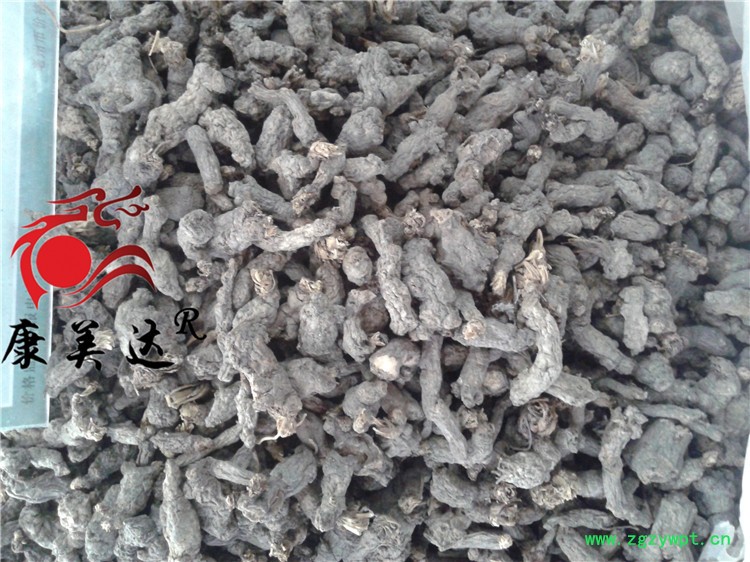 [性 状]:该品块根呈不规则短柱状、纺锤状或块状,略弯曲,有的有2-3短分叉,长1-3cm,直径0.5-1cm。表面暗褐色至灰黑色,具不规则的皱纹及须根或须根痕;顶端常有茎叶残基,外被数层黄褐色鞘状鳞片;中部通常较膨大。质较软,易折断,断面皮部类白色,木部黄白色或黄棕色,略显放射状纹理。气微,味甘、微苦辛。以个大,断面皮部色白者为佳。