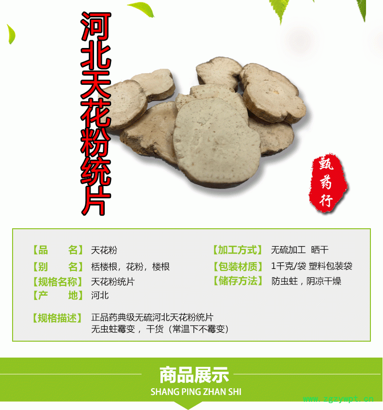 天花粉 包含量药典货 产地 河北省 1公斤装