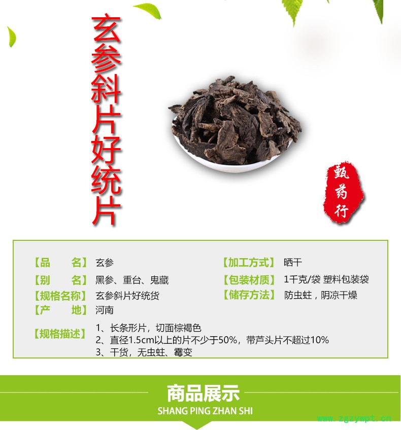 玄参 斜片好统片 产地 河南省 1公斤装