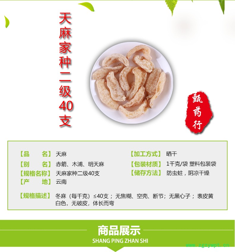 天麻 家种天麻40支 放心好货 一手货源批发1公斤装 产地云南 甄选药材行 为你真选好药材