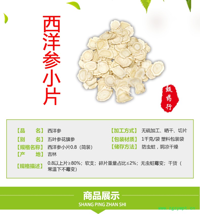 西洋参 小片0.8(筒装) 产地 吉林省 1公斤装