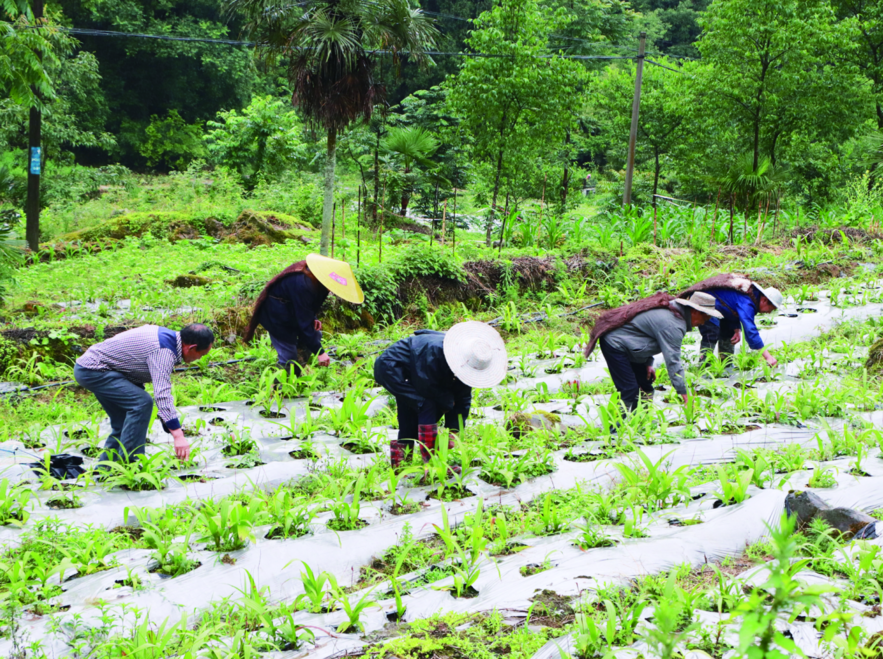 村民在管护中药材。