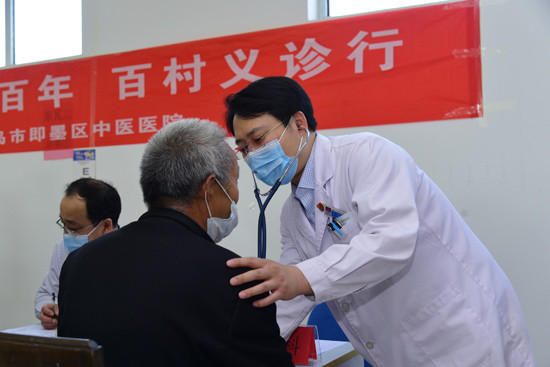 即墨区中医医院医生在义诊中悉心问诊