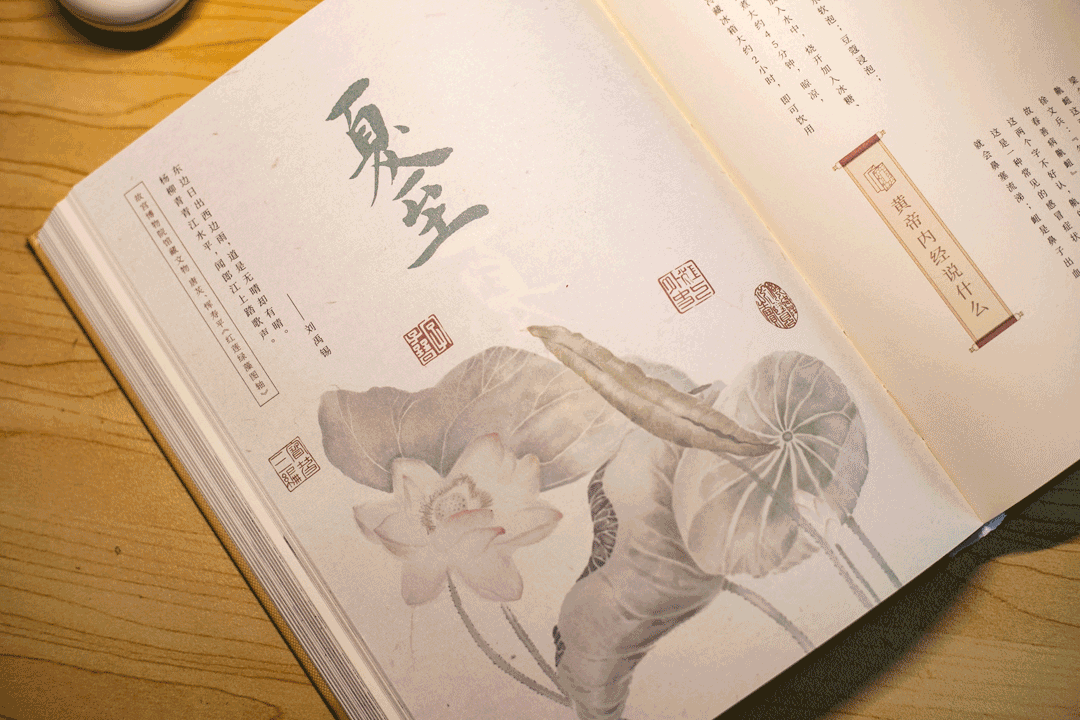 打开封面,首先跃入眼帘的是24节气歌、馆藏名画鉴赏,而后是《黄帝内经·四气调神大论全文》书法赏鉴。