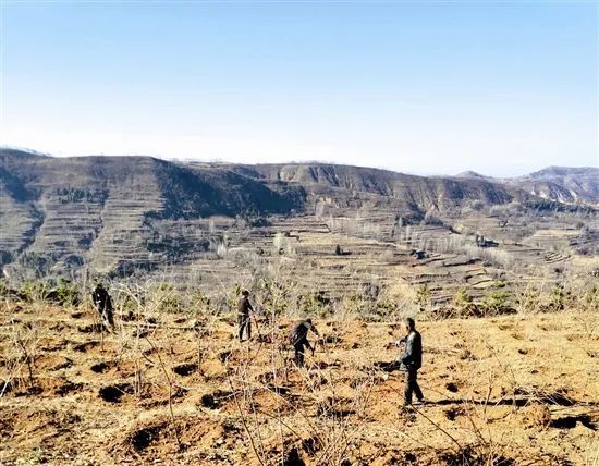 ▲近日,卢氏县文峪乡望家山万亩果药基地,村民正抢抓农时,除草、犁地、施肥,铆足干劲为今年的丰产丰收打好基础。