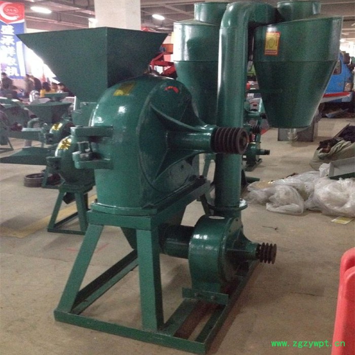 泰丰牌齿盘式粉碎机-该齿爪式粉碎机,在机座上装有主机,主机包括有机体以及和机体连接在一起的活门组成粉碎室,机体内装有轴承以及由轴承支承的主轴,主轴伸出机体外部的一端装有皮带轮,在粉碎室内的一端装有转子,轴承两端装有内端盖和外端盖,转子上紧固有数圈钢齿,与固定在活门里的齿盘交错配置,活门上端有入料口,入料口上面装有盛料斗。