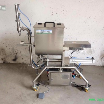 该机为半自动活塞式膏体灌装机。