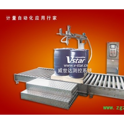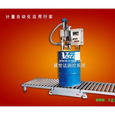 自动双速度灌装→完成自动提抢→防滴盘接液→误差检测显示→人工下桶旋盖