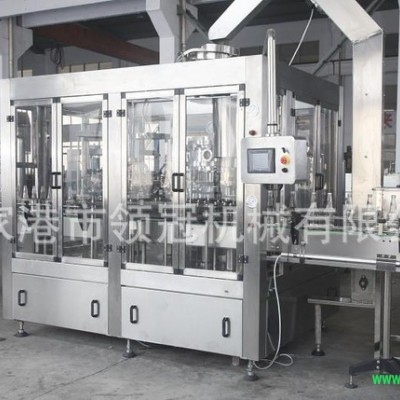 灌装机是我国引进德国技术,运用等压灌装原理自行设计制造,实现将液体灌装到由冲瓶机送过来的洗好的瓶子中。