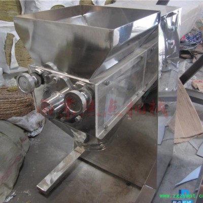 摇摆颗粒机通过机械传动使滚筒往复摆动,将物料从筛网中挤出制粒或粉碎颗粒。