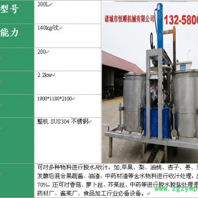 压榨脱水机种类有单桶压榨收汁机、双桶轮换式压榨收汁机、全自动压榨收汁机、用户可根据不同的工艺要求选择不同的设备。