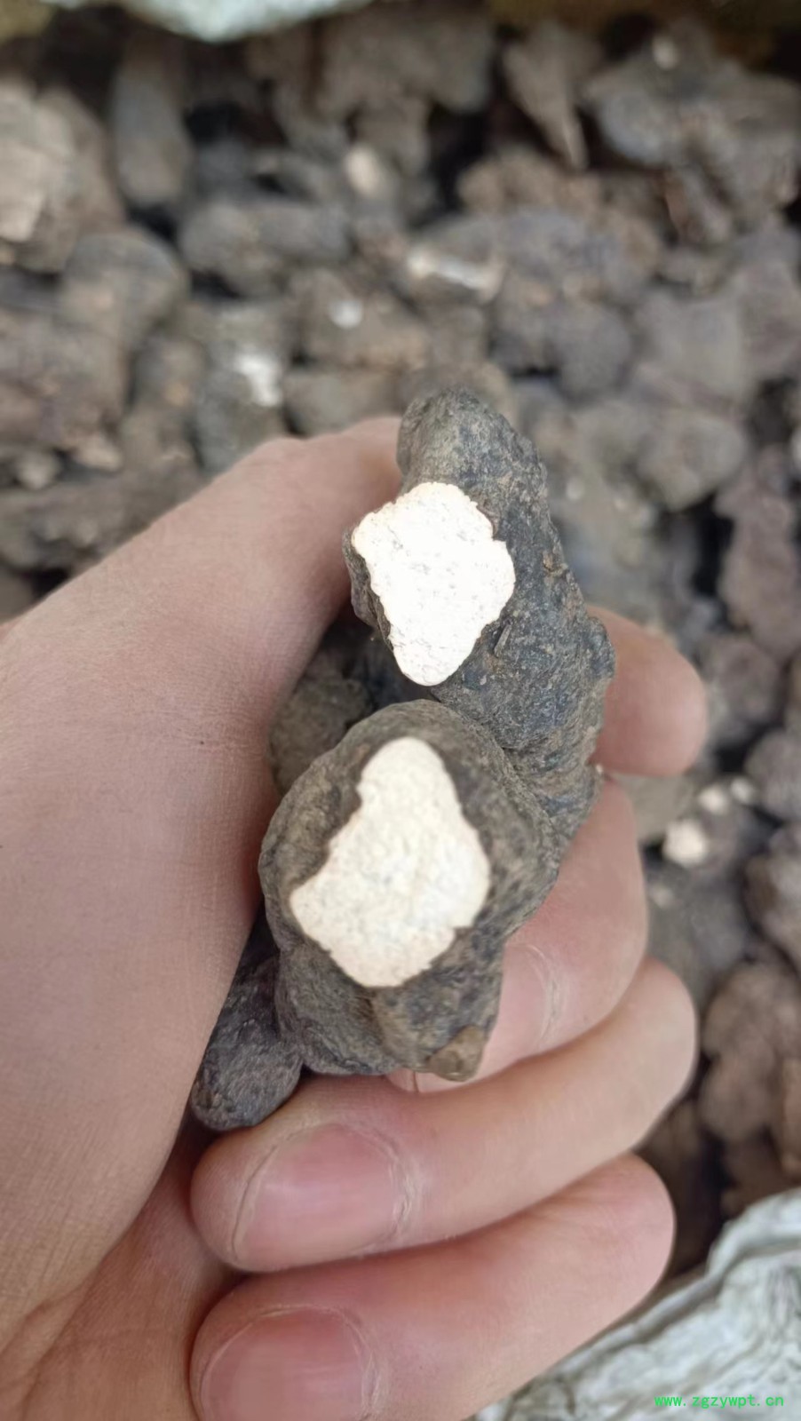 菌核形状不规则,呈大小不一的团块状,坚实,表面紫黑色,有多数凹凸不平的皱纹,内部白色,大小一般为3-5cm×3-20cm。