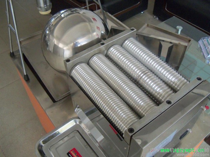 7、结构:本机由挤压出条离合滚轴、制丸滚轴、水丸包衣器、全齿轮变速、电机、电加热等部件组成。