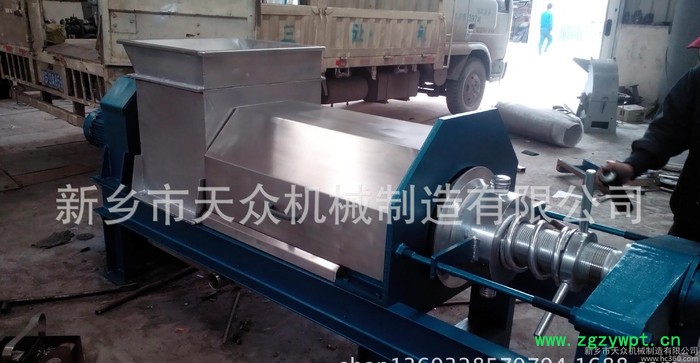 双螺旋压榨机为可连续式双螺旋压榨机,本机用于含有一定纤维质或有粘性的其宏观世界物料的固液分离作业.如发酵后的葡萄皮渣、生姜、菠菜、橡胶、中草药、冬枣等含一定纤维的水果和蔬菜提汁,也用于除过枝或含少量小枝的沙棘果的连续榨汁,其筛孔专门按沙棘子的大小特殊制造的。