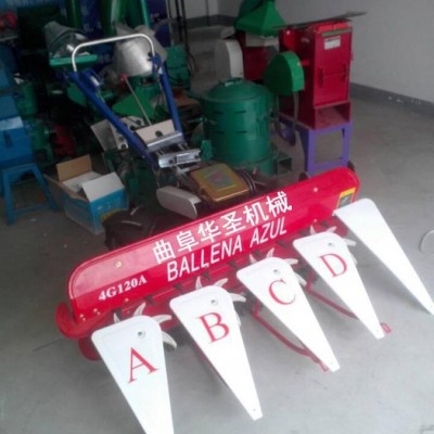 曲阜市华圣机械设备有限公司过几年的研究试制成功开发了4HG-120型系列稻麦微型割晒机,该机具有结构简单、合理、操作维修方便、体积小、重量轻、能耗低、性能稳定、可靠性好、适用性强等特点。特别适用于小地块、山地、丘陵及需要秸杆利用地区的水稻、三麦以及大豆、芦苇的收割作业。解决了几千年来农民面朝黄土背朝天,一身汗水、一身泥的苦处,也是农民挣钱致富的好机器。(工作20天收回全部投资)