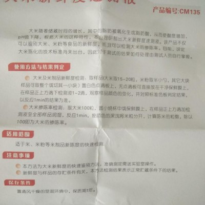 | 用途范围 | 适用于米.米粉等米制品新陈度的快速检测 |