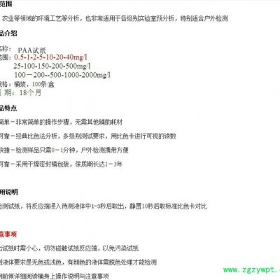 产品名称:过氧乙酸检测试纸