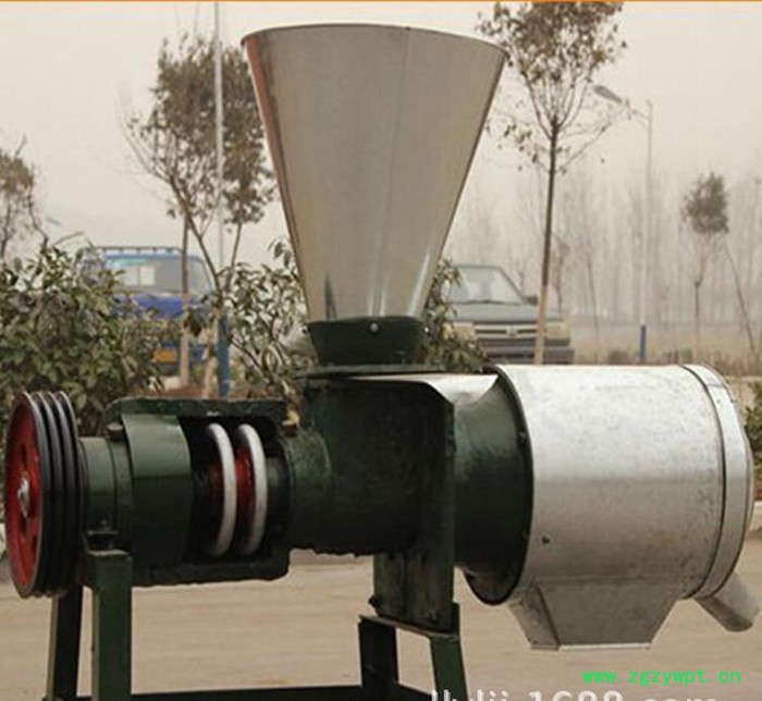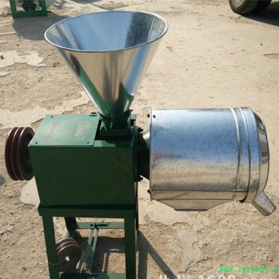 本机结构主要有由进料口、锥形磨和分离系统组成,磨面机的内、外磨头下端的配合面呈圆锥形,磨头的上方由两个向心球轴承作为两个主支承点,内、外磨头下端的圆柱作为旋转辅助支承点,并由内磨头的轴向移动调整内、外磨头的间隙。磨碎的粮食直接从磨头间隙经罗架落到罗底上,由可调整间隙的刷子与罗底将面粉与麸子(种皮)分离开。原粮磨面机集粉碎、磨面、磨糊,磨浆、饲料加工于一体,能将小麦、大米、小米、玉米、黄豆、芝麻、大豆、高梁、青稞等粮食类,以及其它部份化工原料,软质石,木粒物料等干磨制成粉,加水和磨成浆(糊),物料加工粗细可以调整,适于农村和小型化粮食、饲料加工作