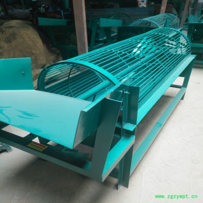 在清洗工作时,物料输送到转动的滚笼内,物料随螺旋绞条滚动前移,移至滚笼出口处,固定在滚笼出口端的料斗将洗净的物料舀至机外的输送带上,连接不断地将经过逆向水流清洗干净的物料送至下道工序。