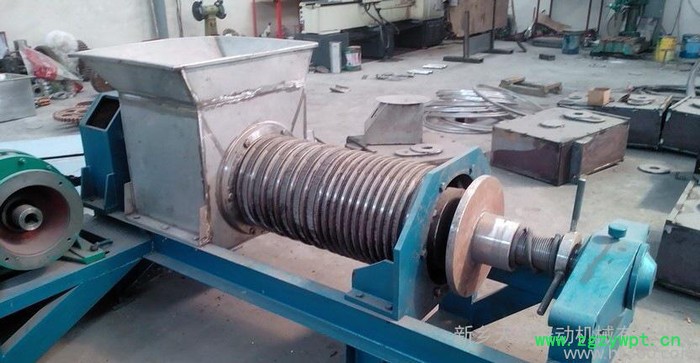 该设备主要有机架、送料部分,压榨部分,传动部分,电控部分组成。其中双螺旋包括反向旋转的输送螺旋和压榨螺旋;单螺旋压榨机除了带有强力进料装置和止退装置外,其螺旋分为进料螺旋、压榨螺旋、挤压螺旋三部分。
