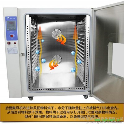 热再经鼓风装置循环流动,确保温度均匀,四周圆弧设计,搁板上下间距可调,内置感温探头。