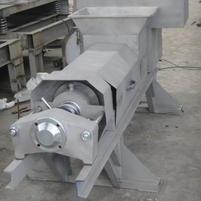 待处理的物料经过泵等工具均匀地输送到螺旋压榨机进料口,经过螺旋叶片挤压和筛网的过滤,水或者汁液经过筛网流到机器下面的接水盘收集后经过管路接走。分离出的固体从后端排出。不同的物料选用不同的筛网(孔径0.1-1mm)、不同的螺旋转速以及适当调整出渣口干湿调节装置来达到**的产量以及渣的干湿程度(或者说通过调整出渣口干湿调节装置以及适当螺旋转速来达到脱水效果和产量的**配合)------含纤维越高,产量越大,脱水后的渣干度也越高;筛网孔径越小,处理的物料的颗粒直径也越小。
