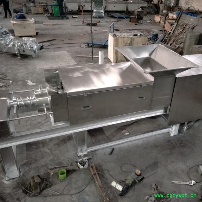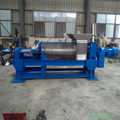 待处理的物料经过泵等工具均匀地输送到螺旋压榨机进料口,经过螺旋叶片挤压和筛网的过滤,水或者汁液经过筛网流到机器下面的接水盘收集后经过管路接走。分离出的固体从后端排出。不同的物料选用不同的筛网(孔径0.1-1mm)、不同的螺旋转速以及适当调整出渣口干湿调节装置来达到**的产量以及渣的干湿程度(或者说通过调整出渣口干湿调节装置以及适当螺旋转速来达到脱水效果和产量的**配合)------含纤维越高,产量越大,脱水后的渣干度也越高;筛网孔径越小,处理的物料的颗粒直径也越小。