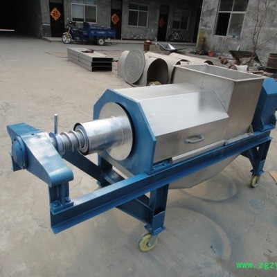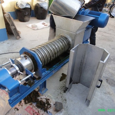 待处理的物料经过泵等工具均匀地输送到螺旋压榨机进料口,经过螺旋叶片挤压和筛网的过滤,水或者汁液经过筛网流到机器下面的接水盘收集后经过管路接走。分离出的固体从后端排出。不同的物料选用不同的筛网(孔径0.1-1mm)、不同的螺旋转速以及适当调整出渣口干湿调节装置来达到**的产量以及渣的干湿程度(或者说通过调整出渣口干湿调节装置以及适当螺旋转速来达到脱水效果和产量的**配合)------含纤维越高,产量越大,脱水后的渣干度也越高;筛网孔径越小,处理的物料的颗粒直径也越小。