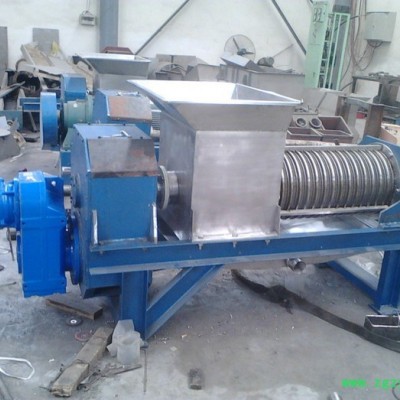 待处理的物料经过泵等工具均匀地输送到螺旋压榨机进料口,经过螺旋叶片挤压和筛网的过滤,水或者汁液经过筛网流到机器下面的接水盘收集后经过管路接走。分离出的固体从后端排出。不同的物料选用不同的筛网(孔径0.1-1mm)、不同的螺旋转速以及适当调整出渣口干湿调节装置来达到**的产量以及渣的干湿程度(或者说通过调整出渣口干湿调节装置以及适当螺旋转速来达到脱水效果和产量的**配合)------含纤维越高,产量越大,脱水后的渣干度也越高;筛网孔径越小,处理的物料的颗粒直径也越小。