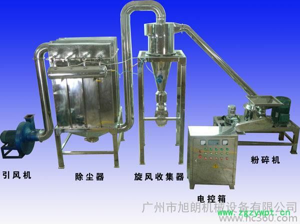 物料由料门经螺旋输送器进入粉碎室,被高速旋转的刀片剪切粉碎,通过负压风运的方法把物料运入旋风分离器,袋式除尘器、排出物料粉尘由吸尘箱经布袋过滤回收,生产过程中无粉尘飞扬,且能提高物料的利用率,降低企业成本。