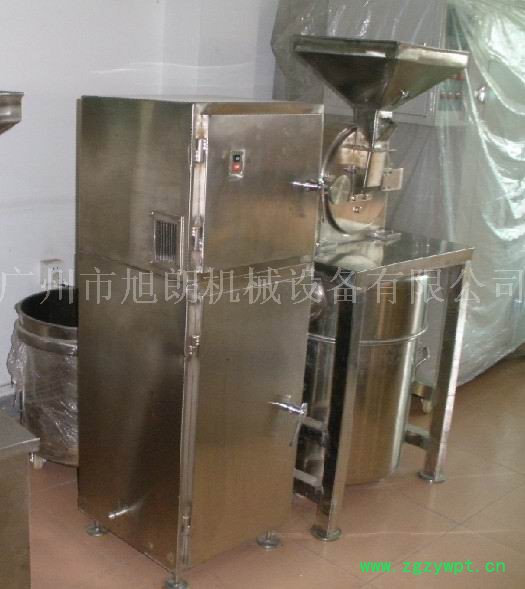 广州旭朗机械设备公司所生产的万能粉碎机系采用**304号不锈钢制作,配套国标电机,主要用于化工材料、中药材含树根、树枝以及块状类物料、各种含油量不高的粮食、五谷杂粮以及其他一些硬性、脆性的物料。本机利用活动齿盘和固定齿盘间的相对高速运转,使被粉碎物经齿盘冲击、摩擦及物料彼此间碰撞而获得粉碎。粉碎物可直接从磨腔中排出,经出料口出来,一般的物料经过粉碎后要经过棉布袋来收集,粉碎后的物料收集在袋内,空气则从布袋的细小孔眼出来,不会将细粉排出,从而起到不浪费,不污染的效果。粒度大小由更换不同目数的筛网决定。