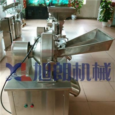 1、结构简单,粉碎腔装拆简便,容易清理。2、本机为全不锈钢制造,符合GMP的要求。3、运转平稳,噪音小,震动小。4、操作简单。更换筛网可以控制出粉细度。5、因为水冷式的结构决定了筛网面积缩小,只有普通齿盘式粉碎机筛网的40%左右,所以决定了水冷粉碎机的出料更慢,这点请客户注意。 水冷万能粉碎机利用锤片的运动,使被粉碎物料在粉碎腔里面,被锤片高速碰撞、敲击、切割和摩擦,以及物料之间的碰撞和摩擦,从而获得粉碎,粉碎后的物料通过筛网落进粉碎腔下方的集料桶内或者布袋内。一般采用布袋装料,粉尘留在布袋里面,而空气以及少量极细的粉尘通过布袋的缝隙,被排出布袋外面。 万能粉碎机主要适用于制药、化工、食品等行业的物料粉碎。禁用于粉碎易燃易爆品。禁止用于金属物品的粉碎。不适用于大块物料的粉碎。不适用于粉碎含水量太高、含油量太高的物料,因为粉碎后出水或者出油,形成酱状物,会堵塞筛网,影响出料,造成出料不畅,甚至卡死、闷机现象。